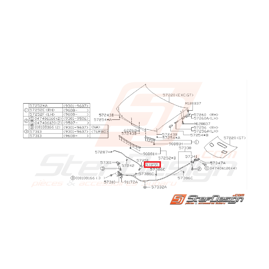 Clips de verrouillage de barre de capot Subaru GT 93-00 Forester Turbo 97-02