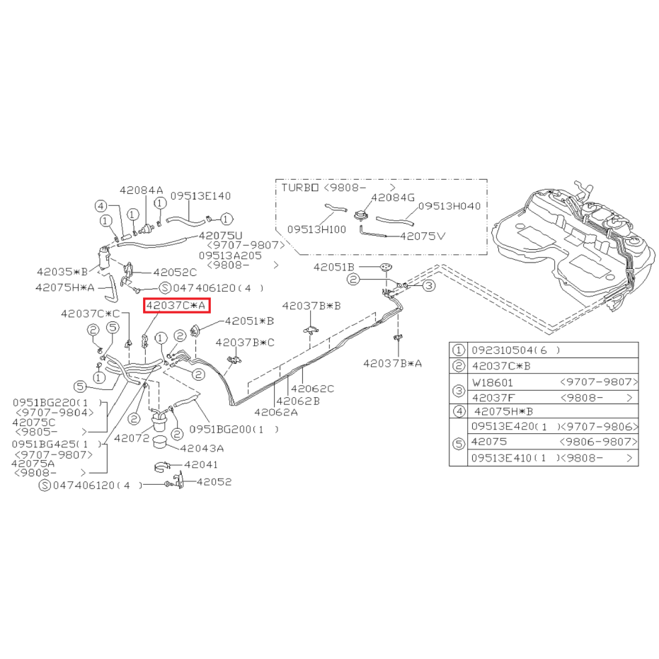 Collier de durite de carburant pour Subaru Forester Turbo de 1997 à 2002