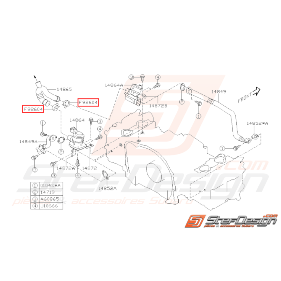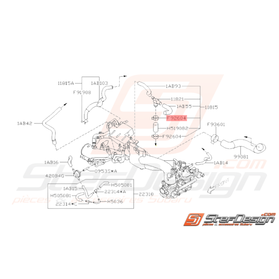 Collier pour durite de Subaru GT de 1993 à 1996, WRX de 2001 à 2007 et STI de 2001 à 2014.
