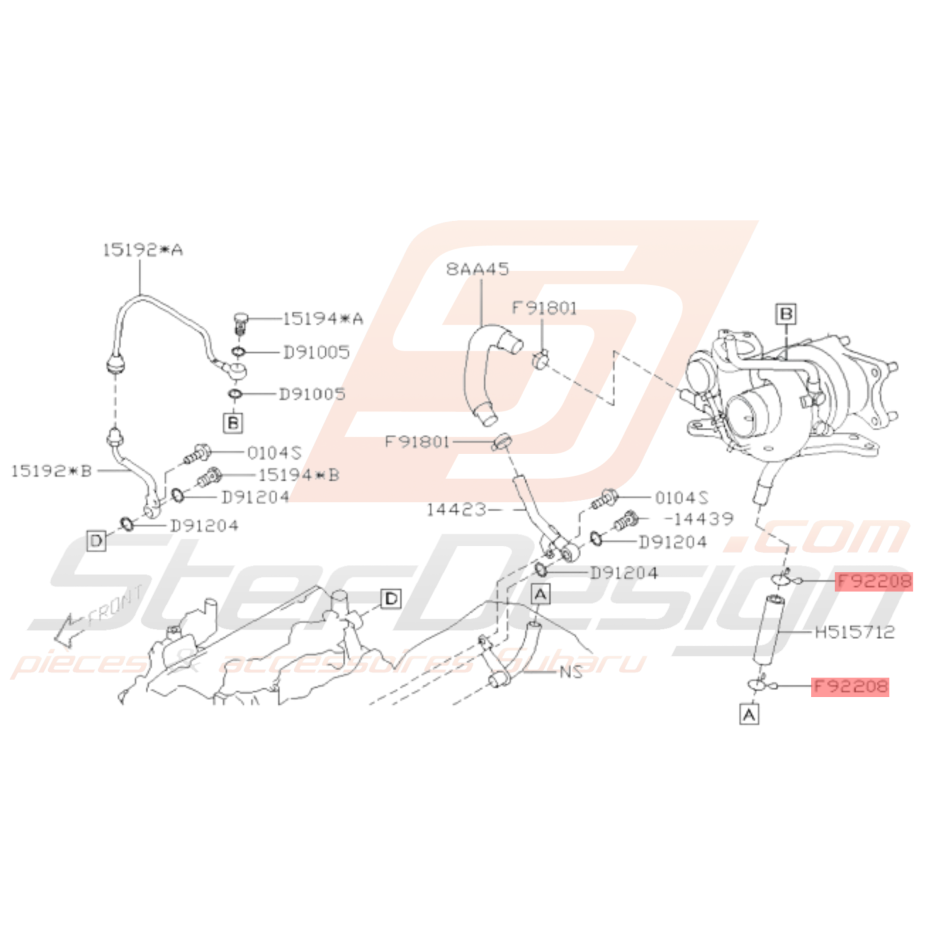 Collier Durite Retour Turbo pour Subaru GT de 1993 à 2000 et STI de 2015 à 2019