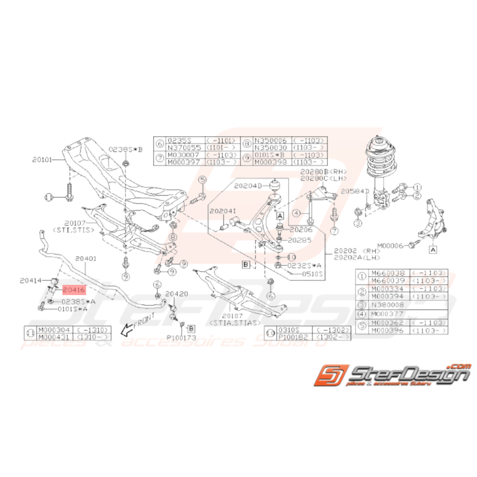 Collier Silent Bloc pour Subaru WRX STI de 2008 à 2014.
