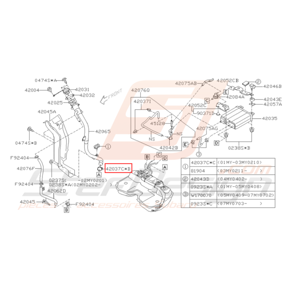 Collier de conduit de carburant pour Subaru Impreza GT de 1993 à 1998, WRX et STI de 2001 à 2007