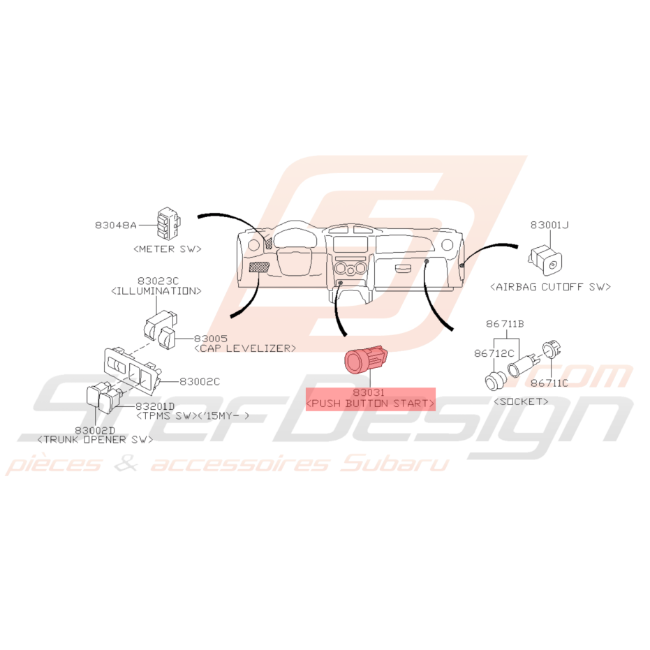 Commutateur de Poussée pour Subaru BRZ de 2013 à 2019.