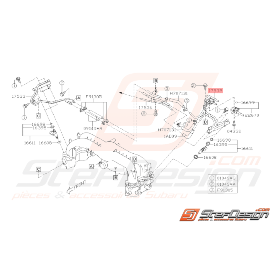 Conduit essence injecteur gauche pour SUBARU WRX de 2008 à 2011.