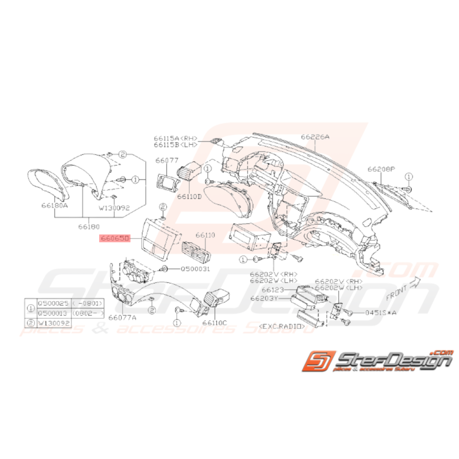 Console Centrale pour Subaru WRX de 2008 à 2010.