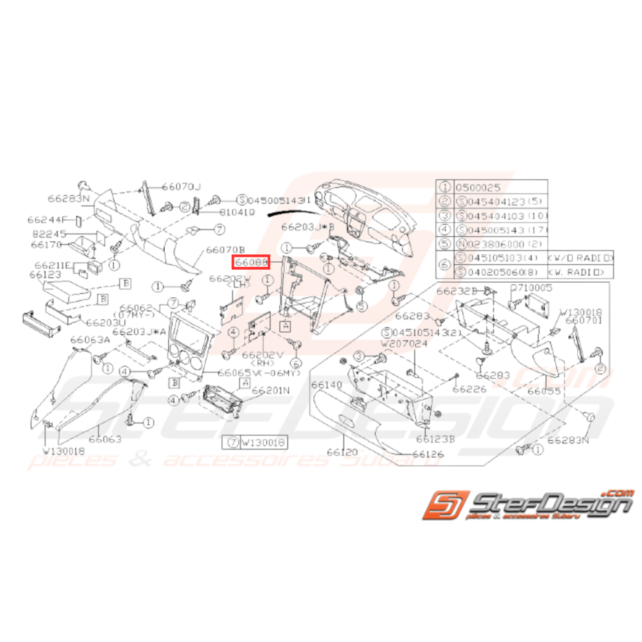 Console de tableau de bord pour Subaru WRX et STI de 2005 à 2007.