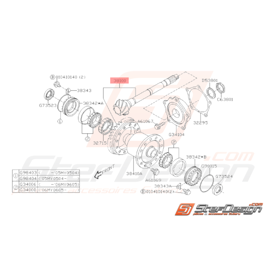 Couple conique Avant Différentiel Origine Subaru STI 2001 - 2014