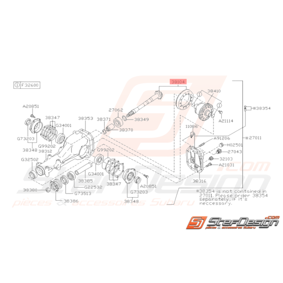Couple conique Origine Subaru STI 07/2004 - 2014 Avec DCCD