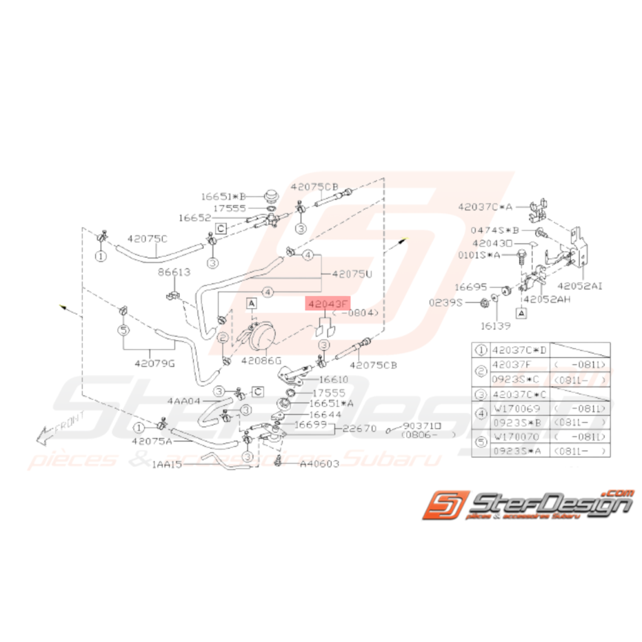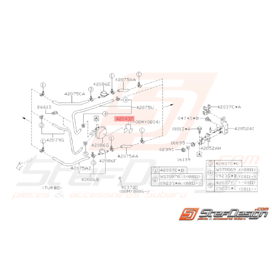 Coussin Canalisation Carburant pour Subaru WRX STI de 2008 au 04 Août 2008.