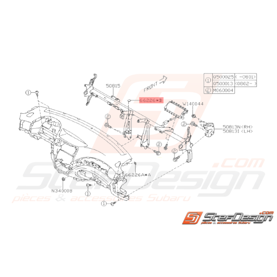 Coussin Tableau de Bord pour Subaru WRX STI de 2008 à 2009.