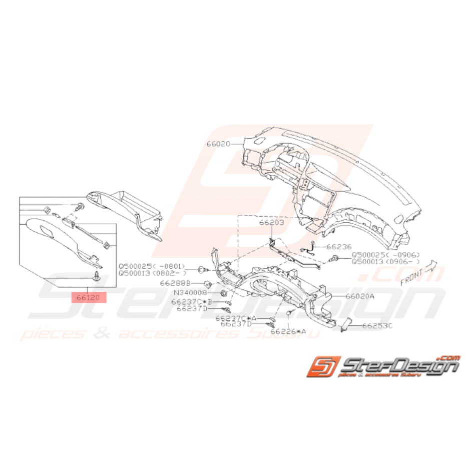 Couvercle Boite à gants Origine Subaru STI 2008 - 2010