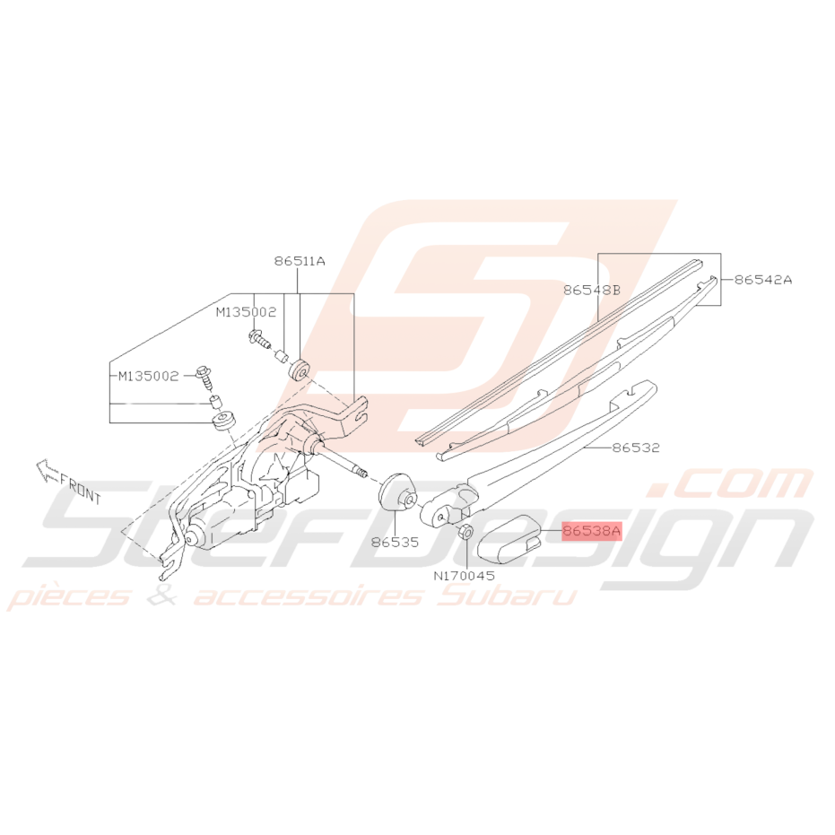 Couvercle Bras d'essuie-glace Arrière pour Subaru WRX STI de 2008 à 2014.