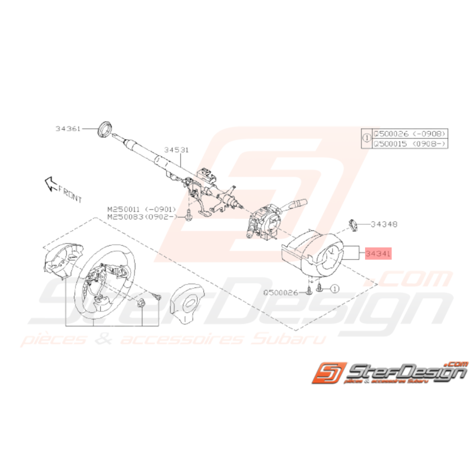 Couvercle de Colonne de Direction pour Subaru WRX STI de 2008 à 2014.