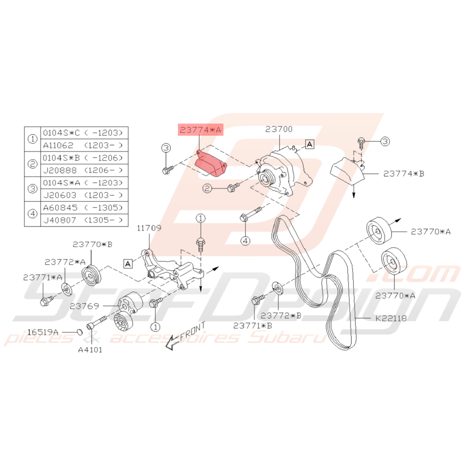 Couvercle Courroie d'Alternateur pour Subaru BRZ de 2013 à 2019.