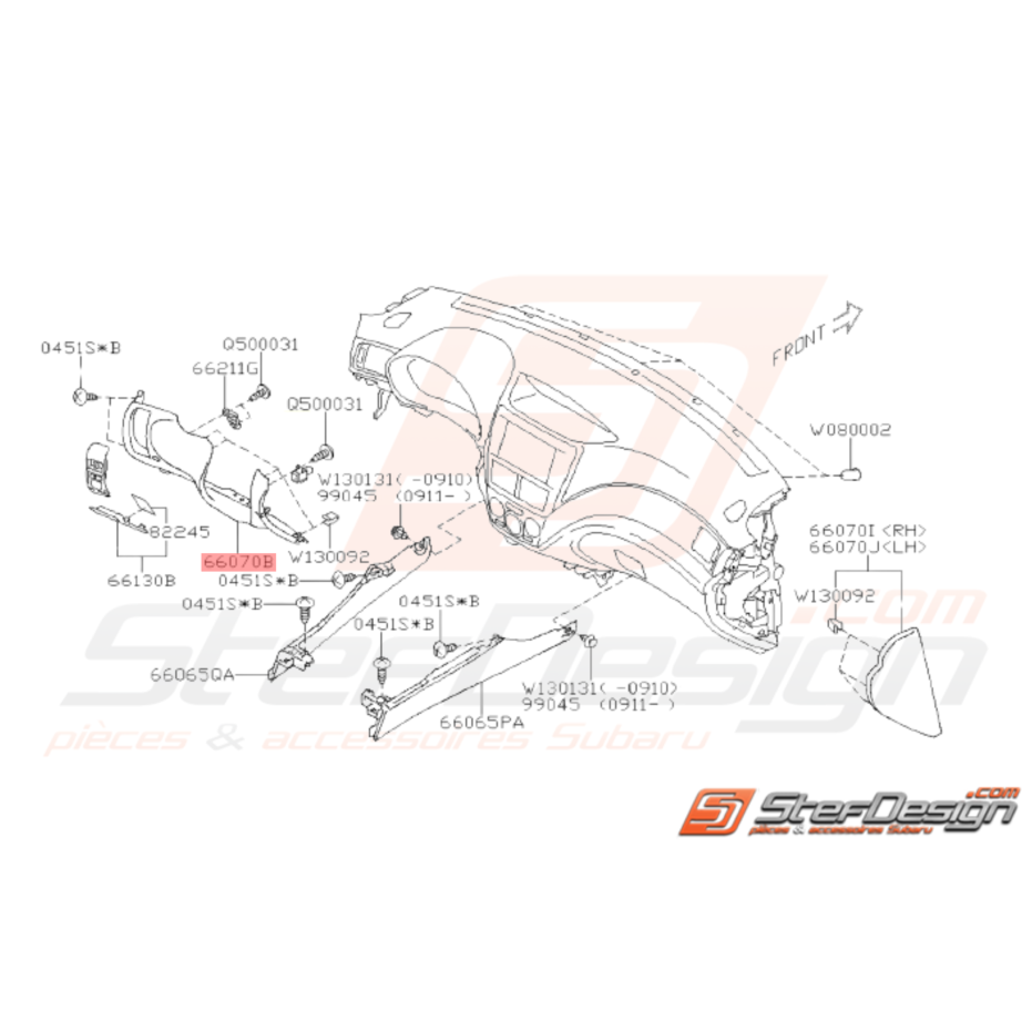 Couvercle Inférieur de Tableau de Bord pour Subaru WRX de 2009 à 2010.