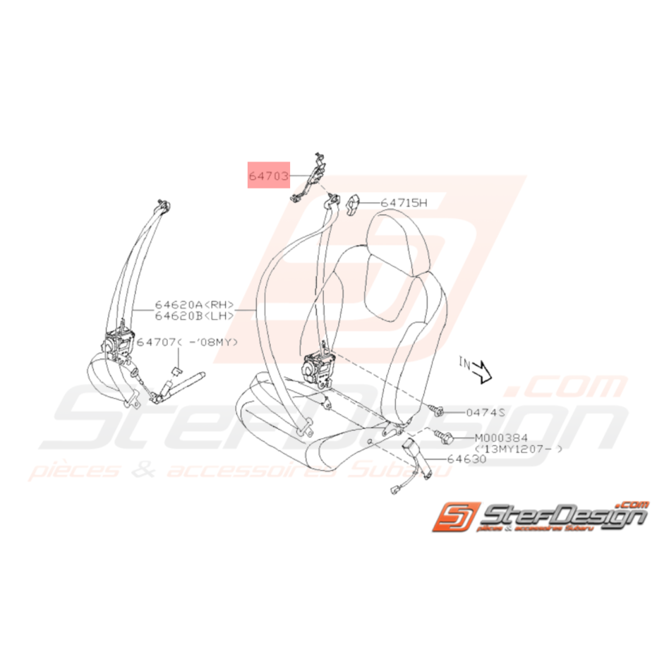 Dispositif de réglage de Ceinture de siège avant pour Subaru STI de 2008 à 2014.