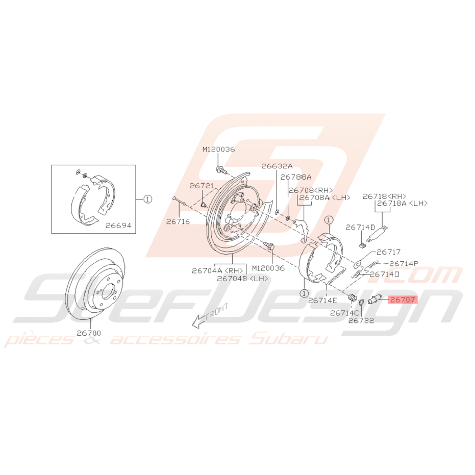 Dispositif réglage frein arrière GT 93-00 WRX/STI 01-07 FORESTER 05-07