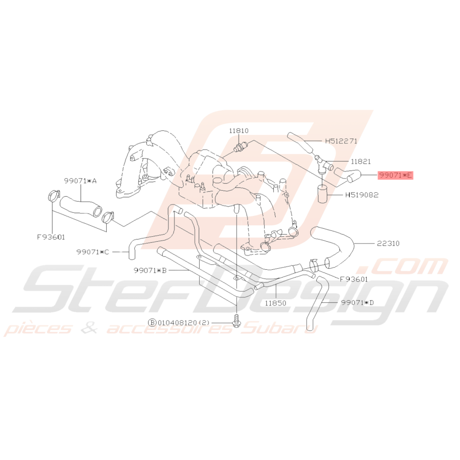 Durite connecteur/vanne PCV pour Subaru GT de 1997 à 2000, FORESTER de 1997 à 2002.