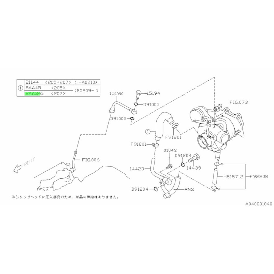 Durite d'eau turbo/culasse Origine Subaru STI JDM twin scroll EJ207
