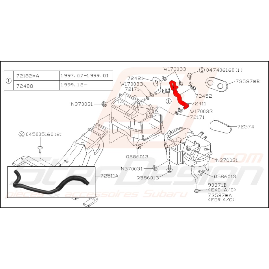 Durite de chauffage origine pour Subaru forester SF5 EJ202