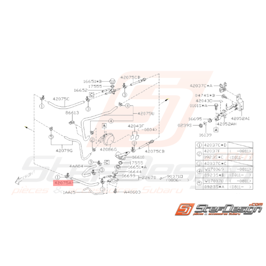 Durite de Retour pour Subaru STI de 2008 à 2014.
