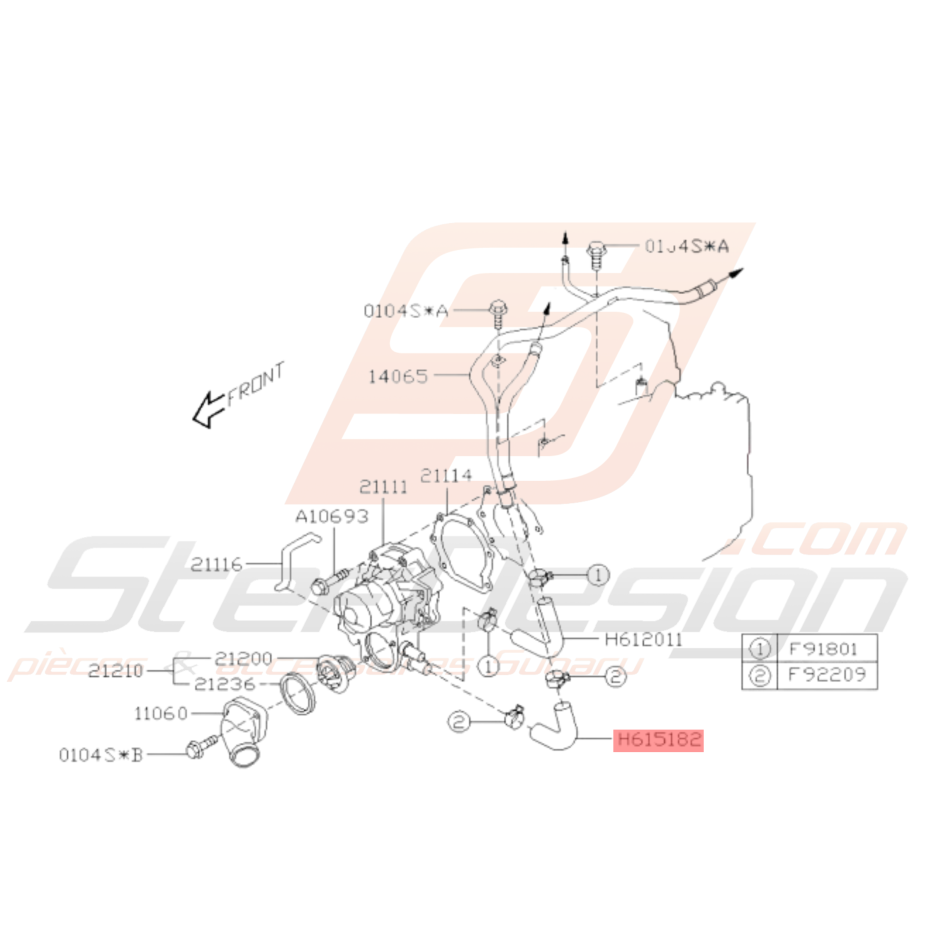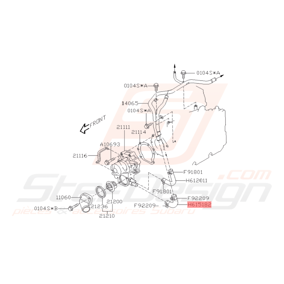 Durite sortie pompe à eau inférieur origine Subaru GT 93-00 WRX 01-10 STI 01-19 FORESTER 97-02/05-07