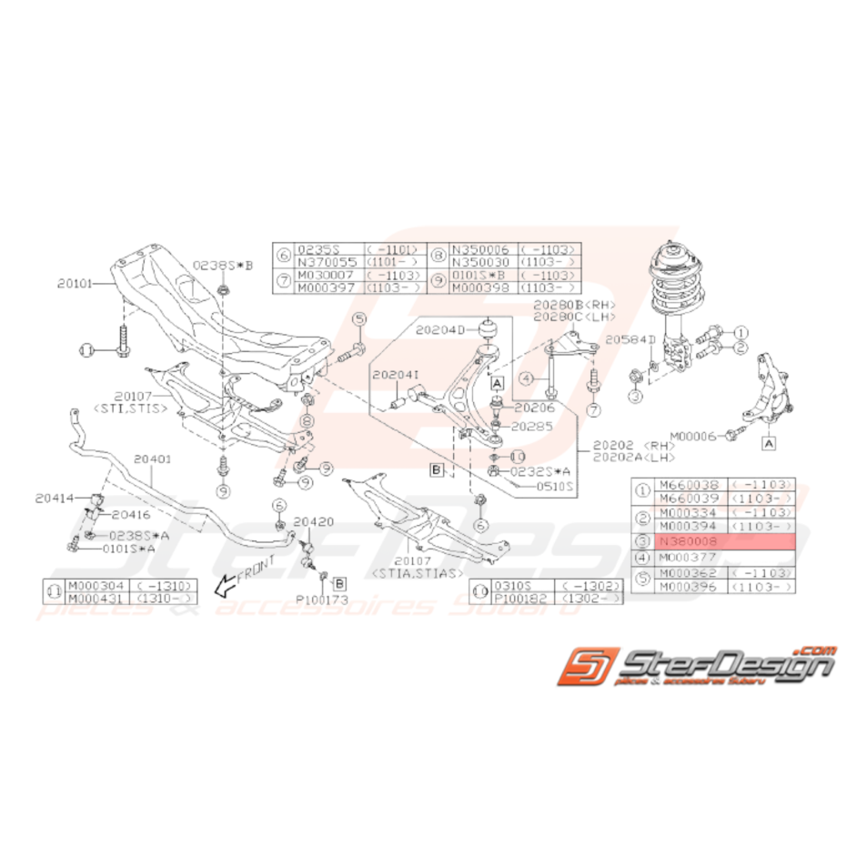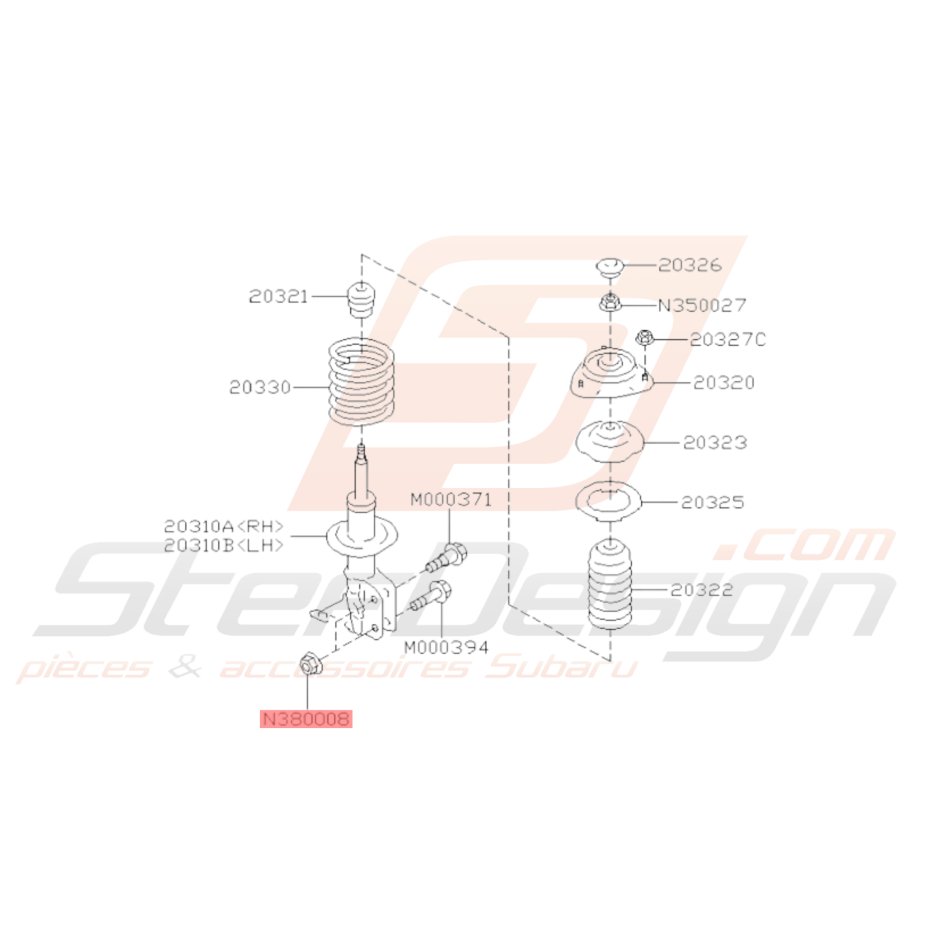 Écrou de fixation d'amortisseur avant pour SUBARU WRX STI du 13 Juillet 2008 à 2014.
