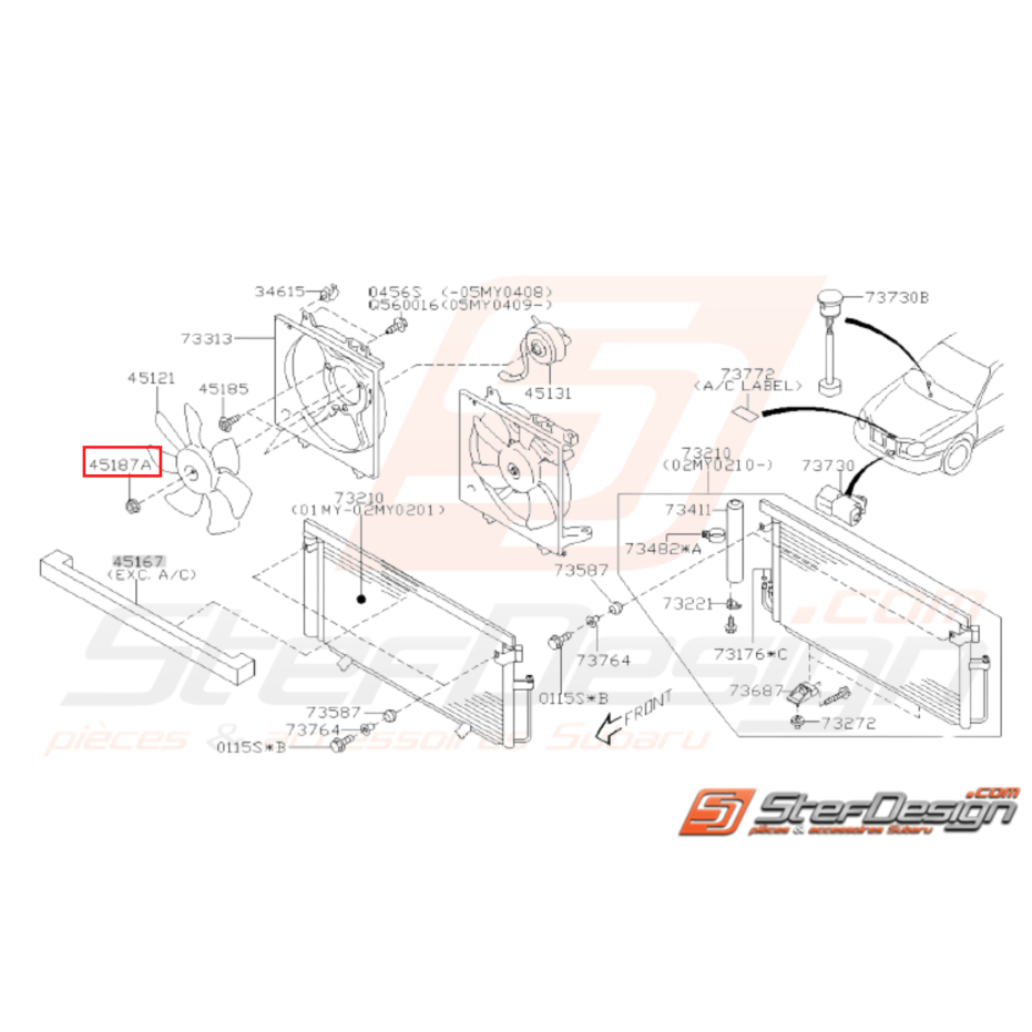 Ecrou adaptable pour ventilateur de climatisation WRX et STI 2001 à 2014 et FORESTER Turbo de 2005 à 2007