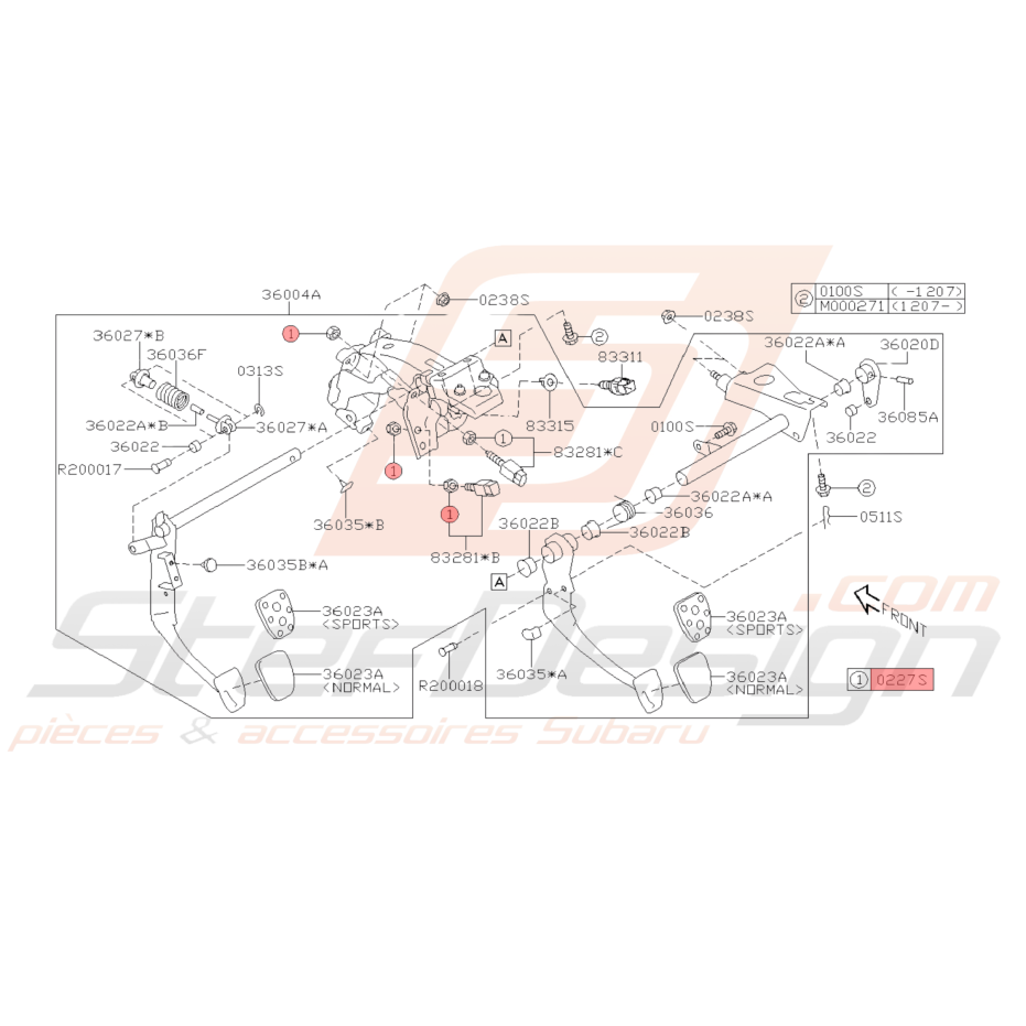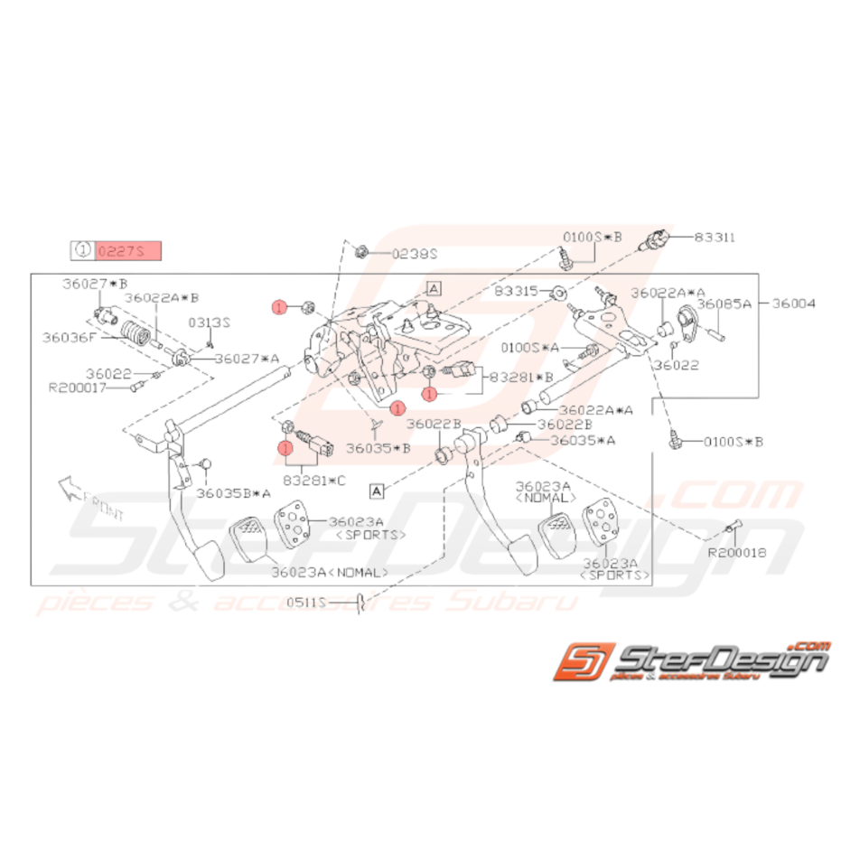 - Système de pédale de frein et d'embrayage pour Subaru GT de 1998 à 2000, WRX STI de 2001 à 2014 et BRZ de 2013 à 2019.