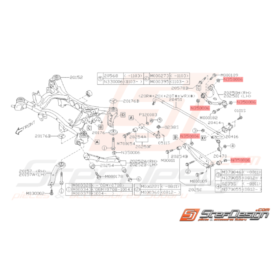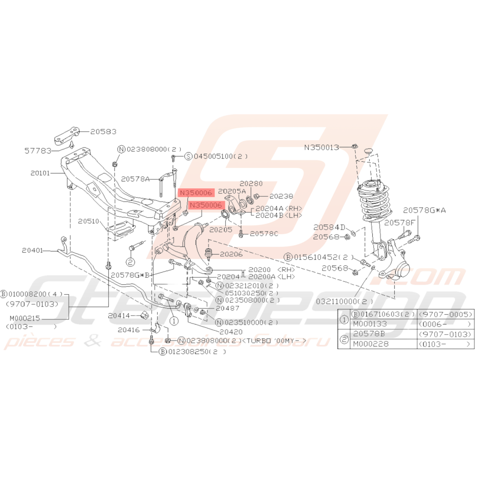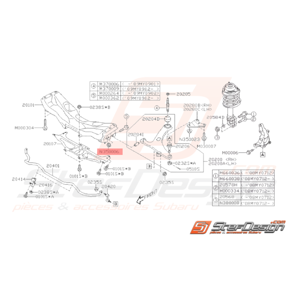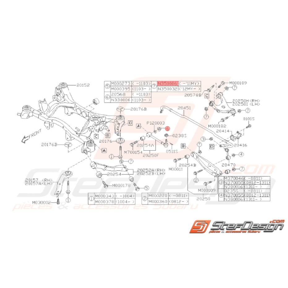 - Schéma Suspension Avant et Arrière pour Subaru WRX et STI de 2001 à Mars 2011.