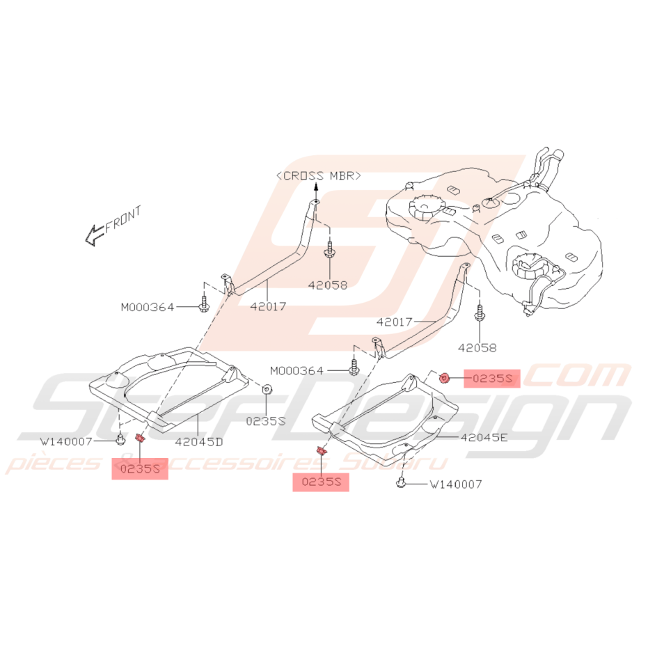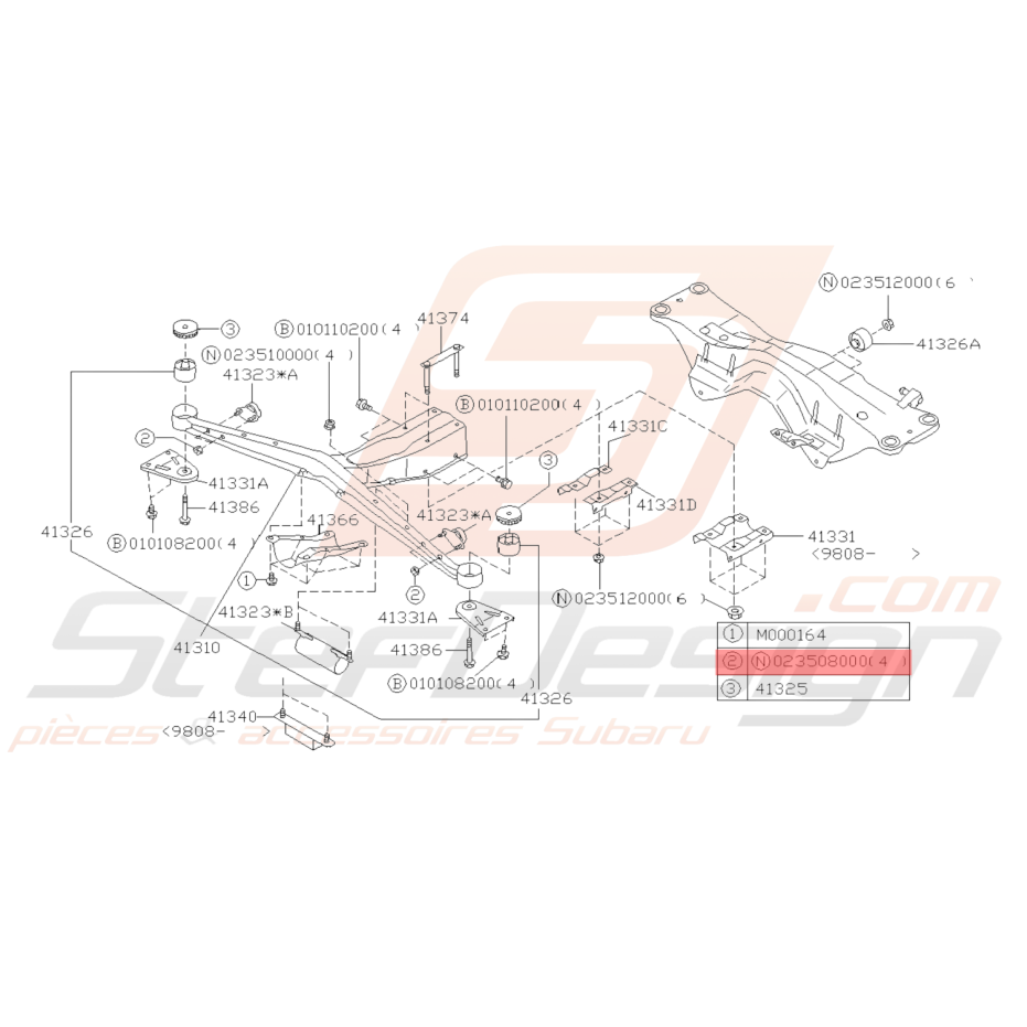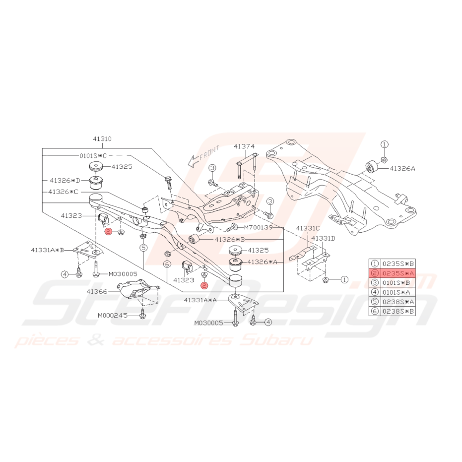 - Support de pont de Subaru GT de 08/1995 à 2000, WRX et STI de 2001 à 2007