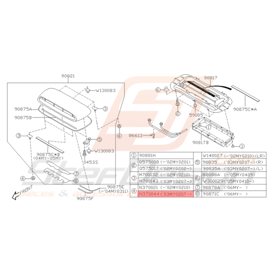 - Prise d'air pour WRX et STI de 10/2002 à 2007 et STI de 2008 à 2010.