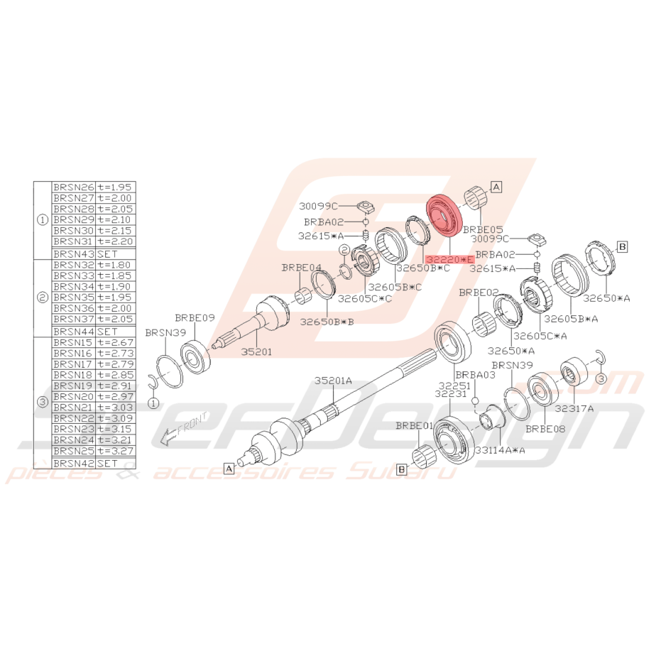 Engrenage Arrière pour Subaru BRZ de 2013 à 2019.