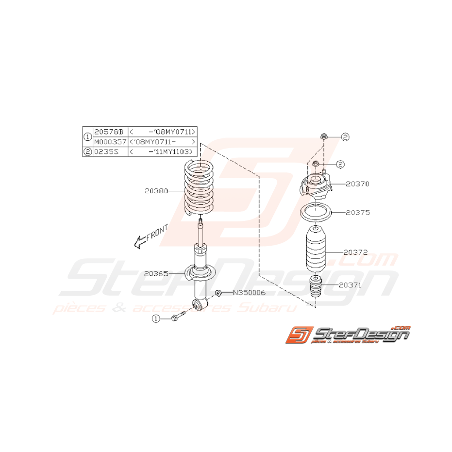 Schéma d'Amortisseur Arrière Origine Subaru WRX 2008 - 2009