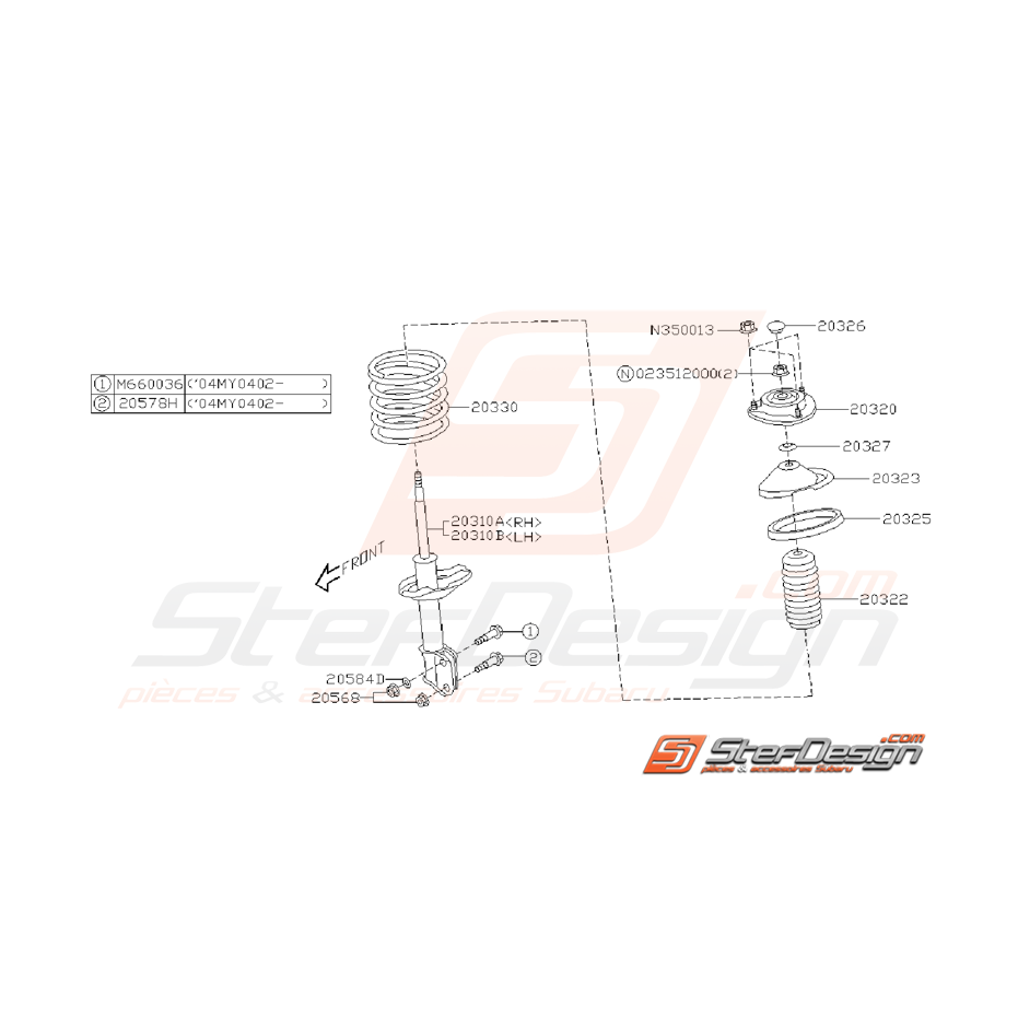Schéma d'Amortisseur Avant Origine Subaru STI 2006 - 2007