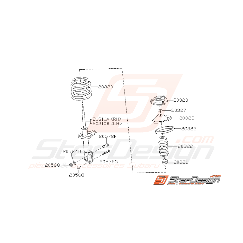 Schéma d'Amortisseur Avant Origine SUBARU GT 1993 - 1997