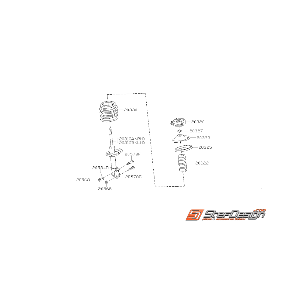 Schéma d'amortisseur avant Origine SUBARU STI v5 / v6 / P1