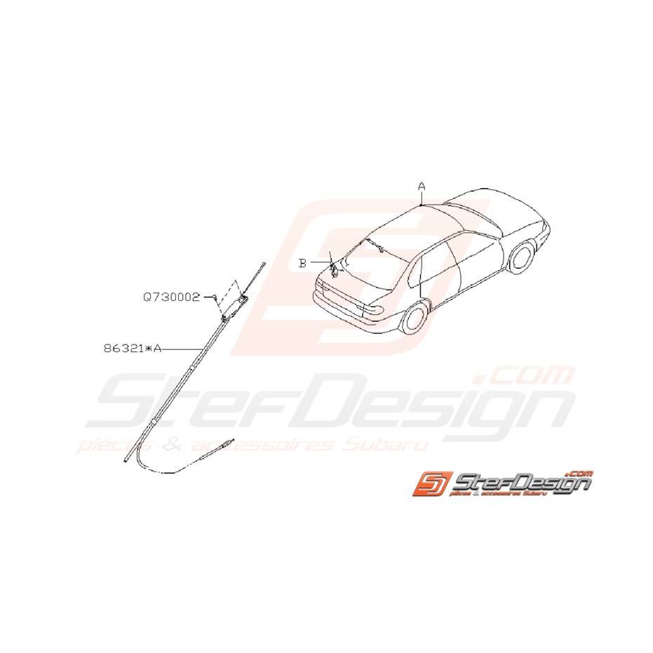 Schéma de l'ensemble des pièces d'antenne pour SUBARU Impreza GT de 1993 à 2000.