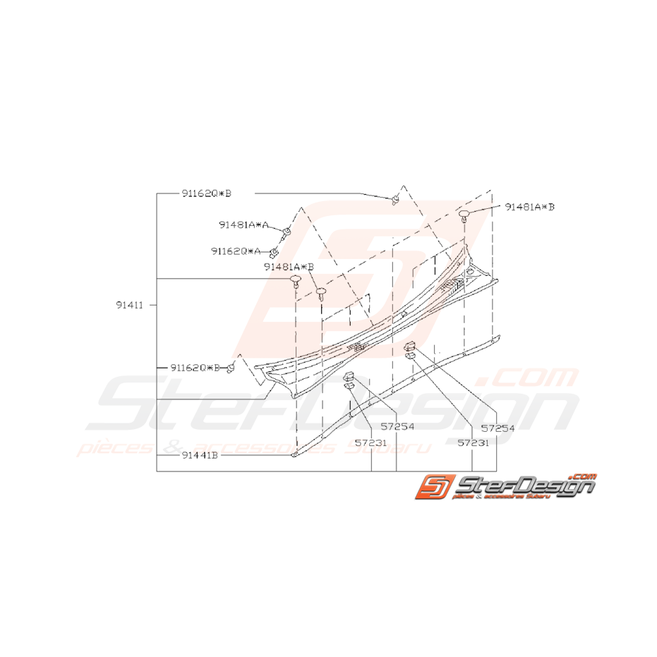 Schéma de Baie de Pare-Brise Origine SUBARU GT 1993 - 2000