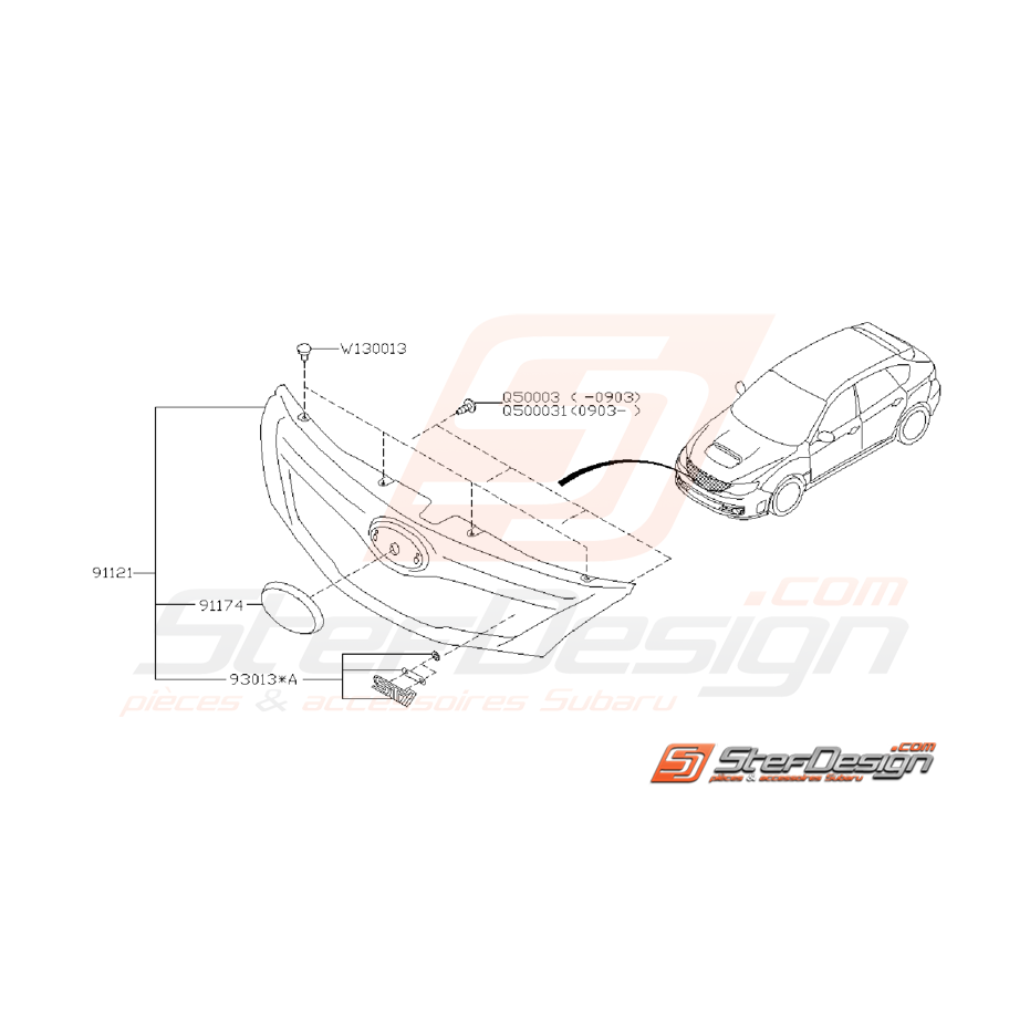 Schéma de Calandre Origine SUBARU STI 2008 - 2010