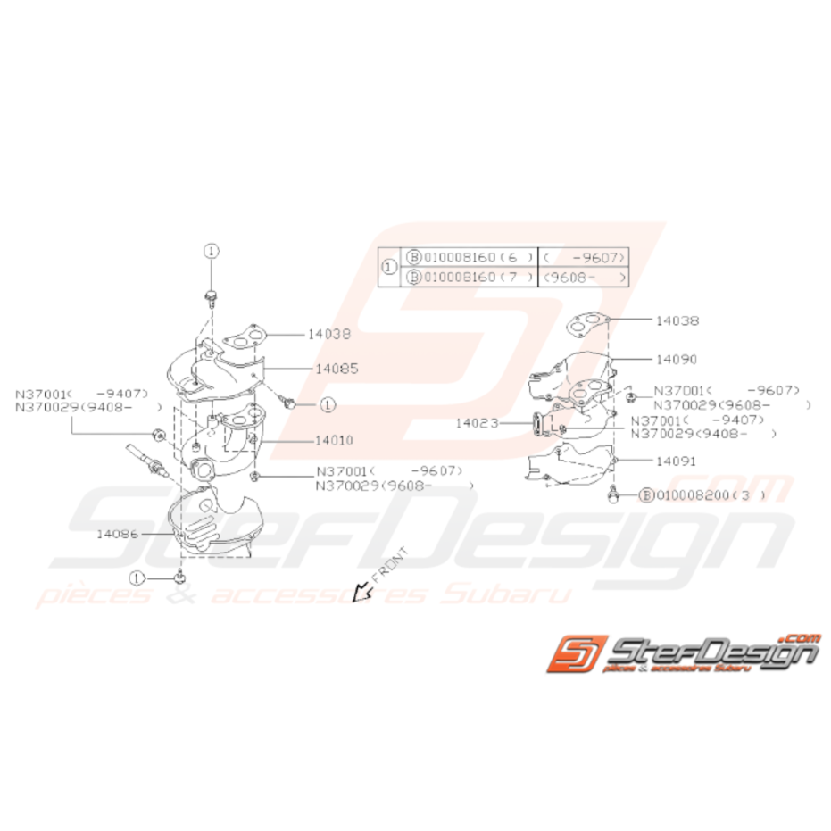 Schéma Collecteur d'échappement Origine SUBARU GT 1994 - 2000