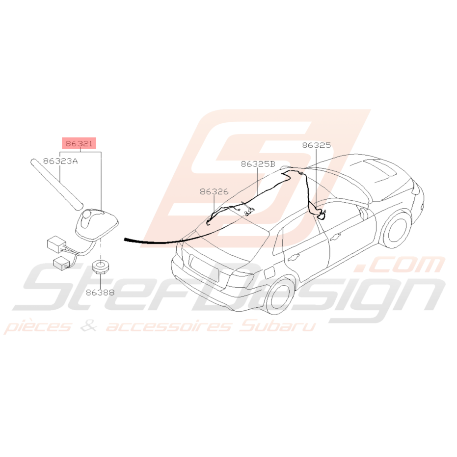 Ensemble d'Antenne Radio pour Subaru WRX STI de 2011 à 2014.