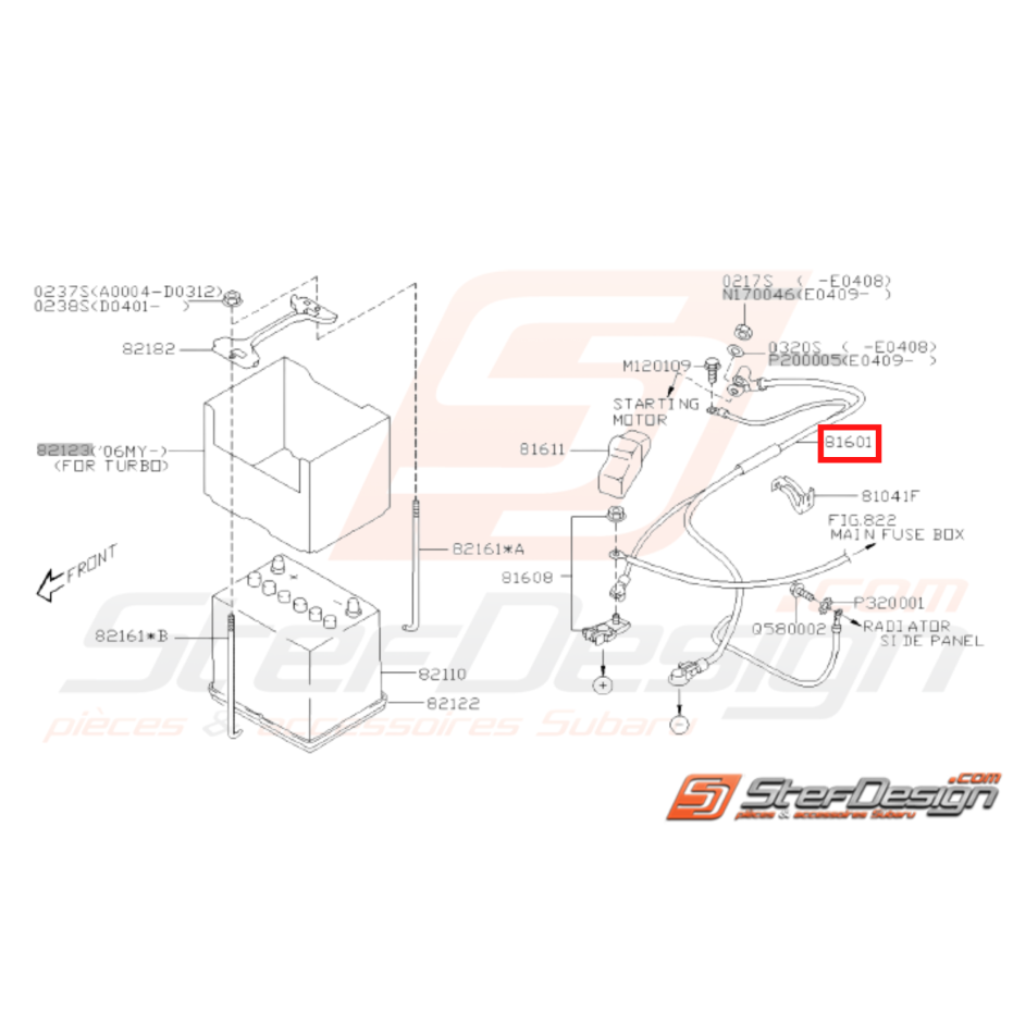 Ensemble de Cable Batterie pour Subaru WRX STI de 2001 à 2005.