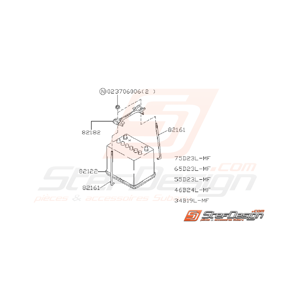 Schéma de l'ensemble des pièces d'équipement de batterie pour Subaru GT 1993 - 2000