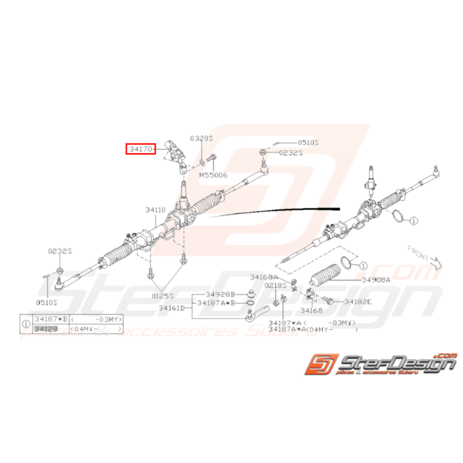 Ensemble Cardan Crémaillère pour Subaru WRX de 2001 à 2007.