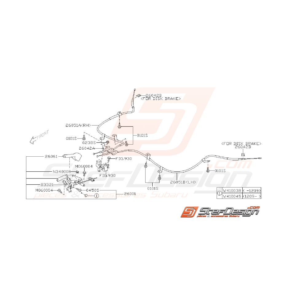 Schéma de Levier de Frein a Main Origine Subaru STI 2008 - 2014