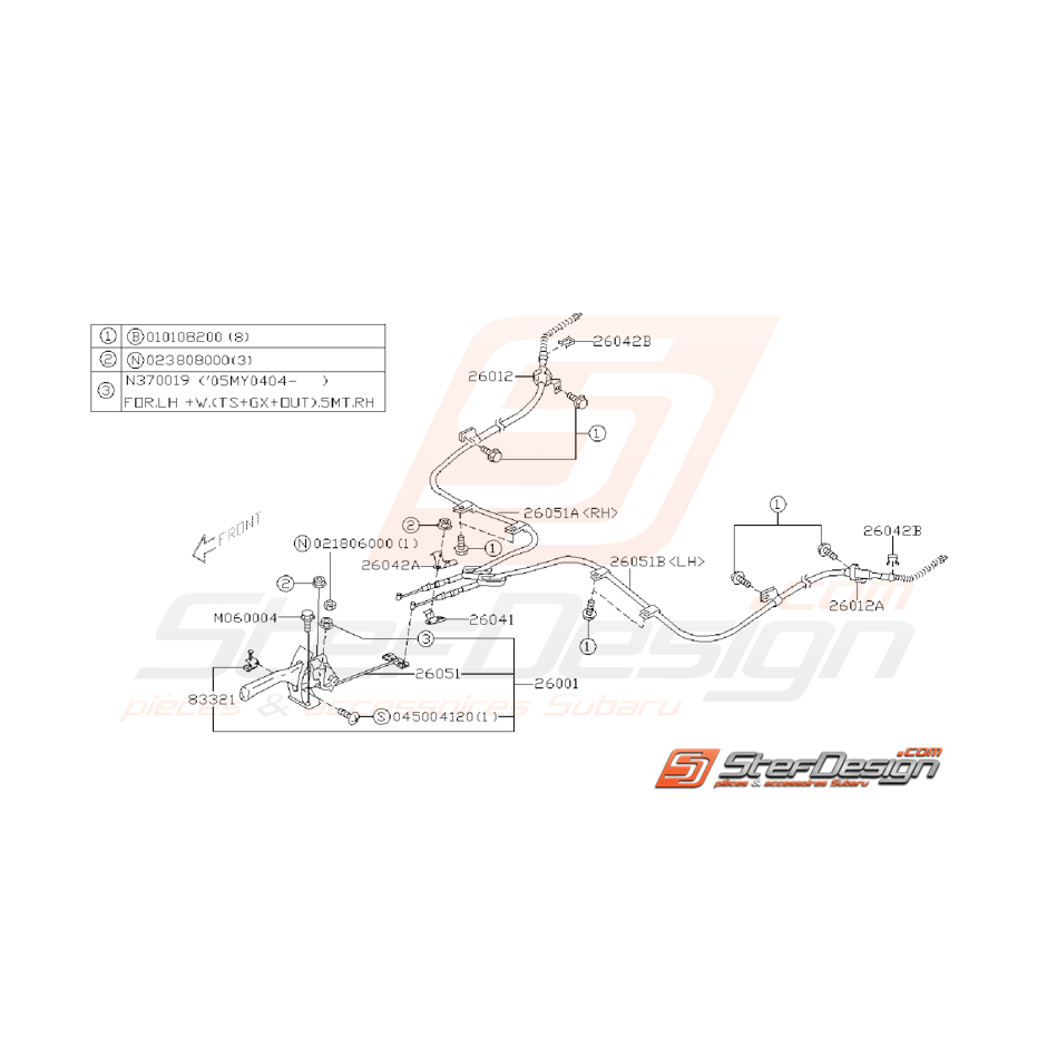 Schéma de Levier de Frein a Main Origine SUBARU WRX 2006 - 2007