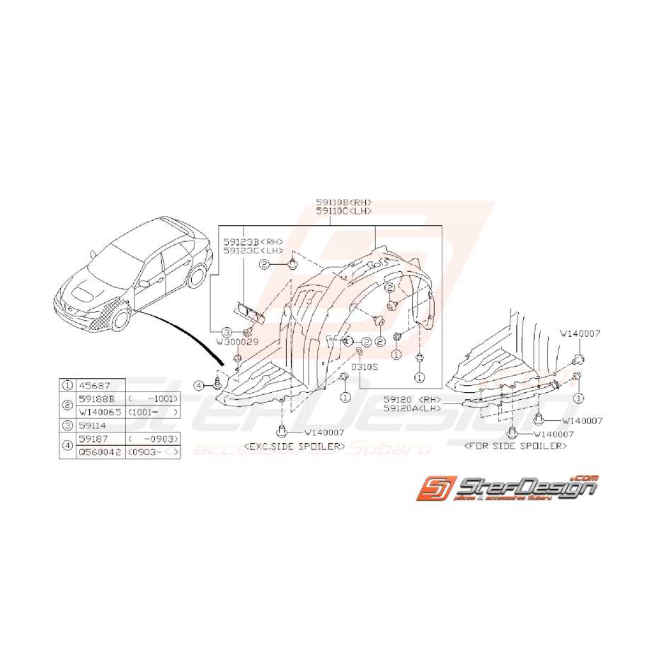 Schéma de Passage de Roue Avant Origine Subaru WRX 2008 - 2011