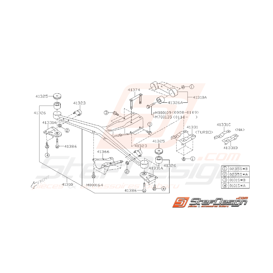 Schéma de l'ensemble des pièces de support de pont pour SUBARU de l'année WRX 2001.