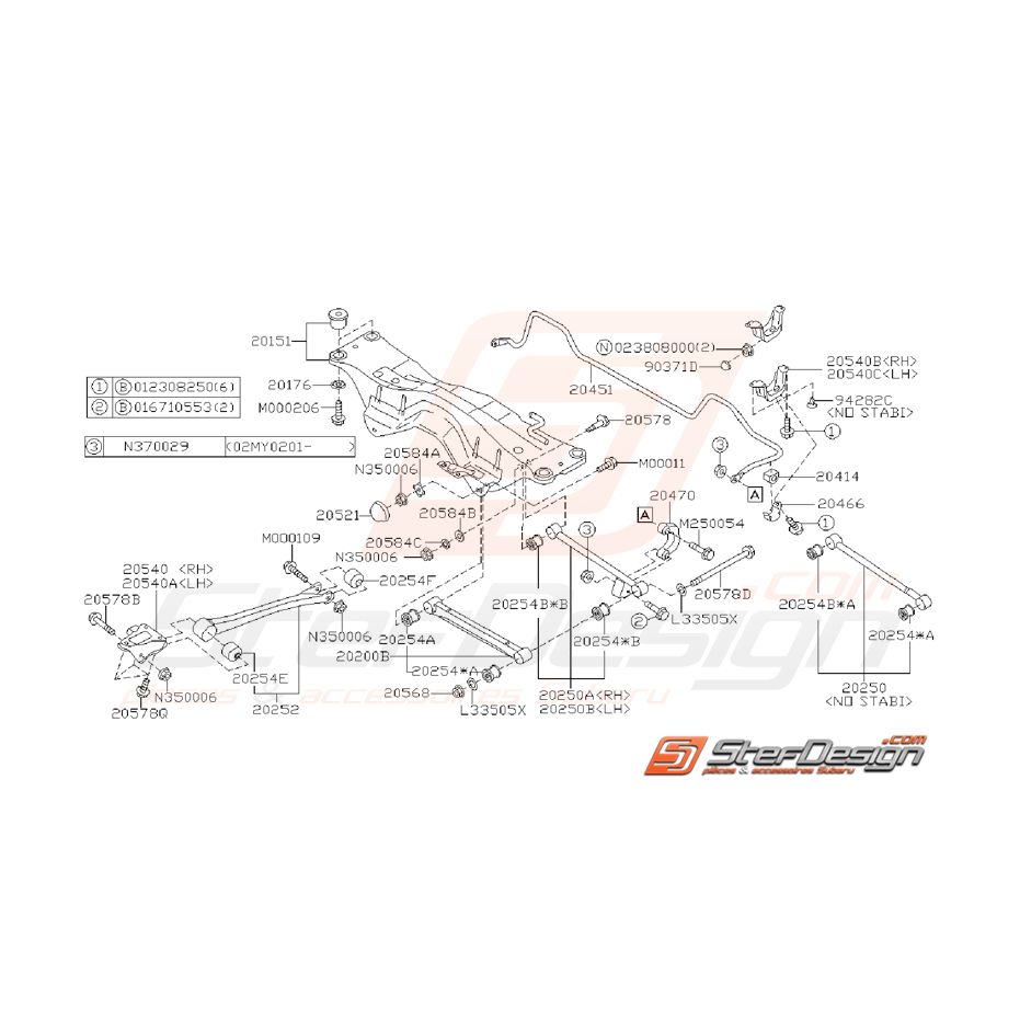 Schéma de Train Arrière Origine SUBARU STI 2003 - 2004
